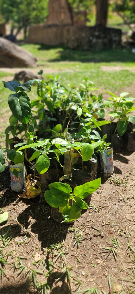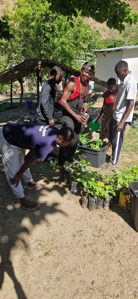 The EARTH Workshops team first ran a refresher training session at NYM for staff and interested community stakeholders. The session focused on water preservation and sustainable land management. As part of the training, they brought 50 seedlings of indigenous trees and fruit vines to be planted on and around NYM’s land.