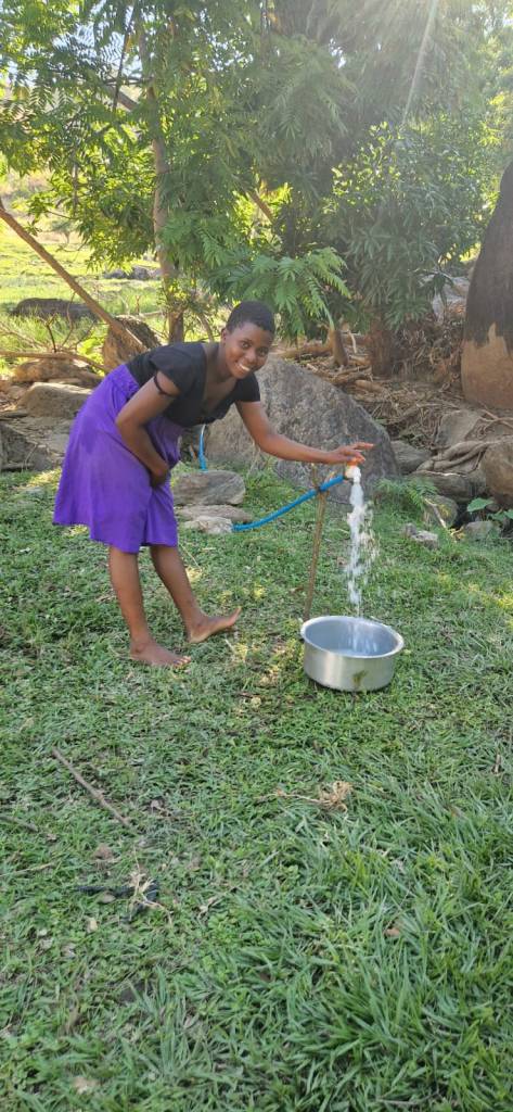 The standpipe allows many community members to collect water from a clean source nearer their homes, and saves them the journey down the valley to the lake and back to collect water.