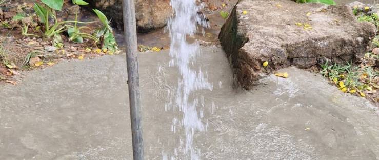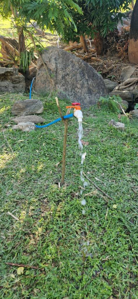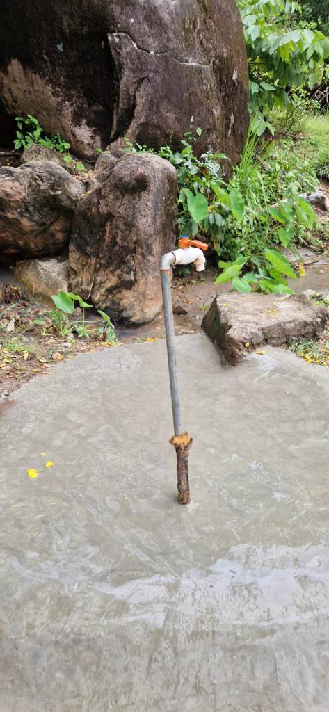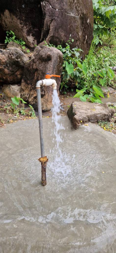 During Covid, this spring water was channelled into a small settling pond and then piped to the Health Centre, just next door to NYM to allow for easy access to clean water that the facility. The remainder continued to flow towards NYM for the needs there.